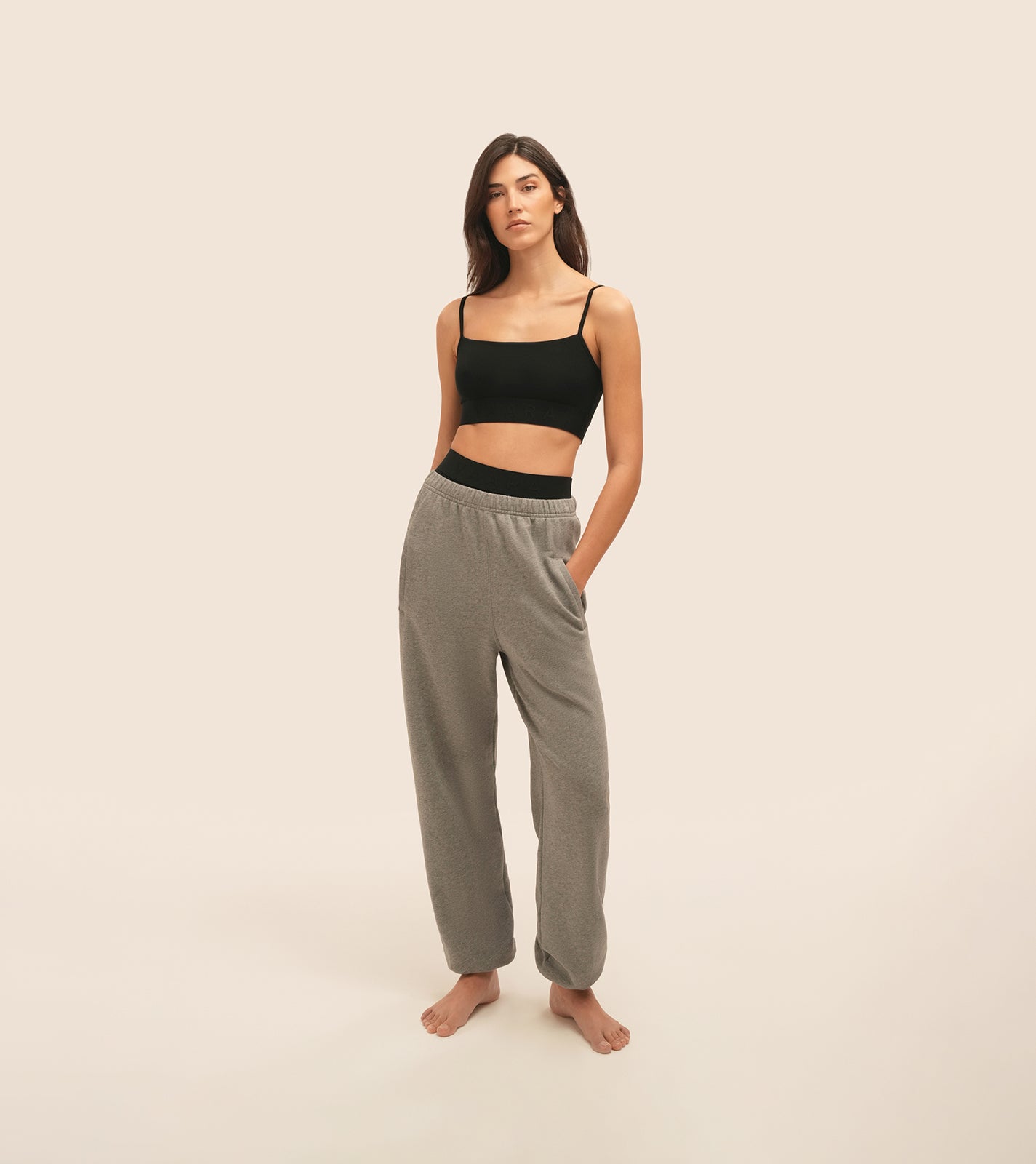 Blurring the lines of sportswear and leisurewear, the Camisole Square Neck Bra sports a branded elastic hem, rounded square neck, and spaghetti straps. This pull-on bralette offers support without uncomfortable fastenings and is made from eco-friendly, skin-friendly, moisture-regulating SeaCell fibre for comfort.