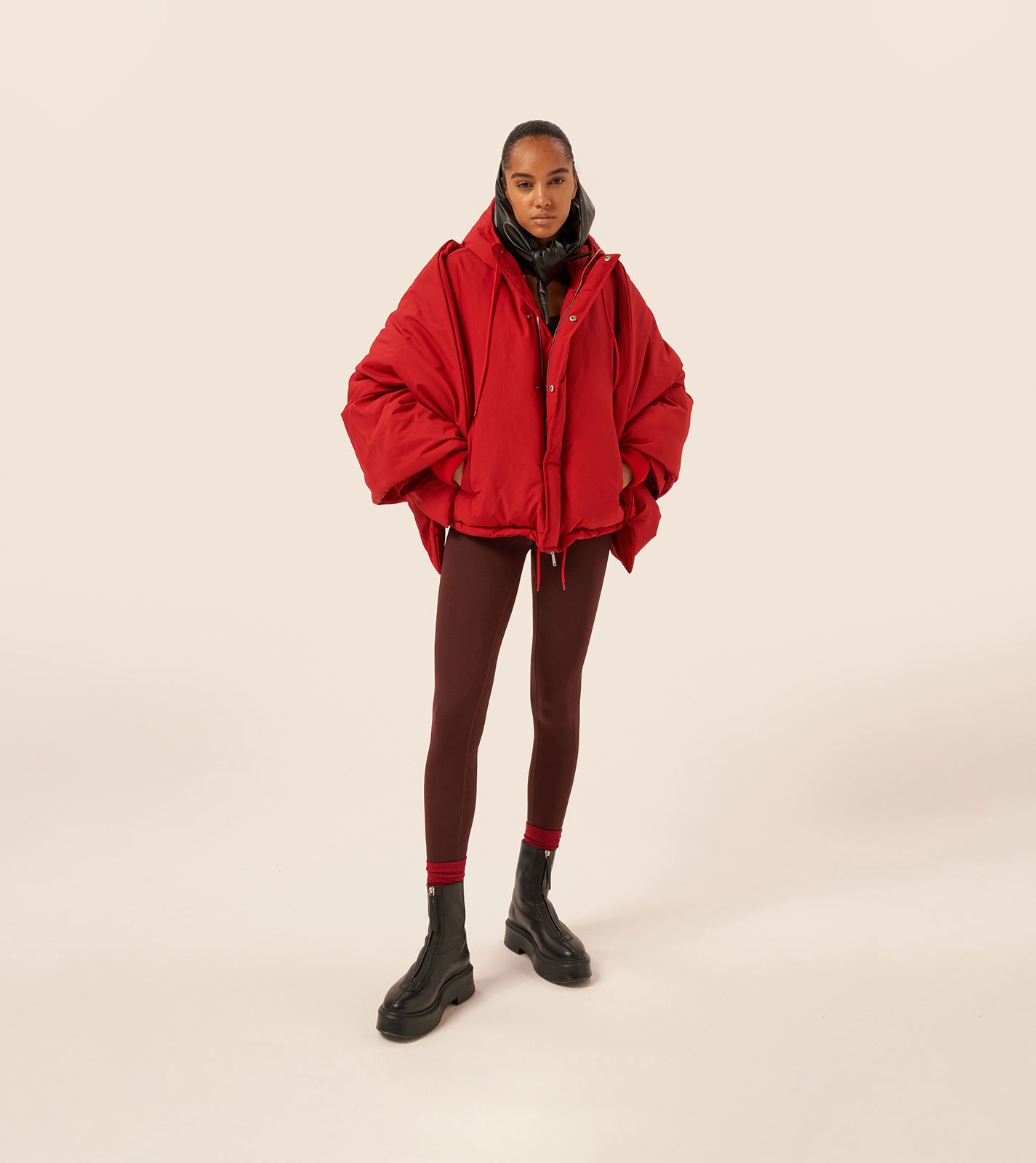The mid-length Hooded Puffer Jacket boasts a sleek, understated design. Cut from a quilted shell fabric; it is filled with sumptuous down for optimal warmth and comfort. Including knitted wrist gaiters, a drawstring hem, and side pockets add practicality and style to this coveted piece.
