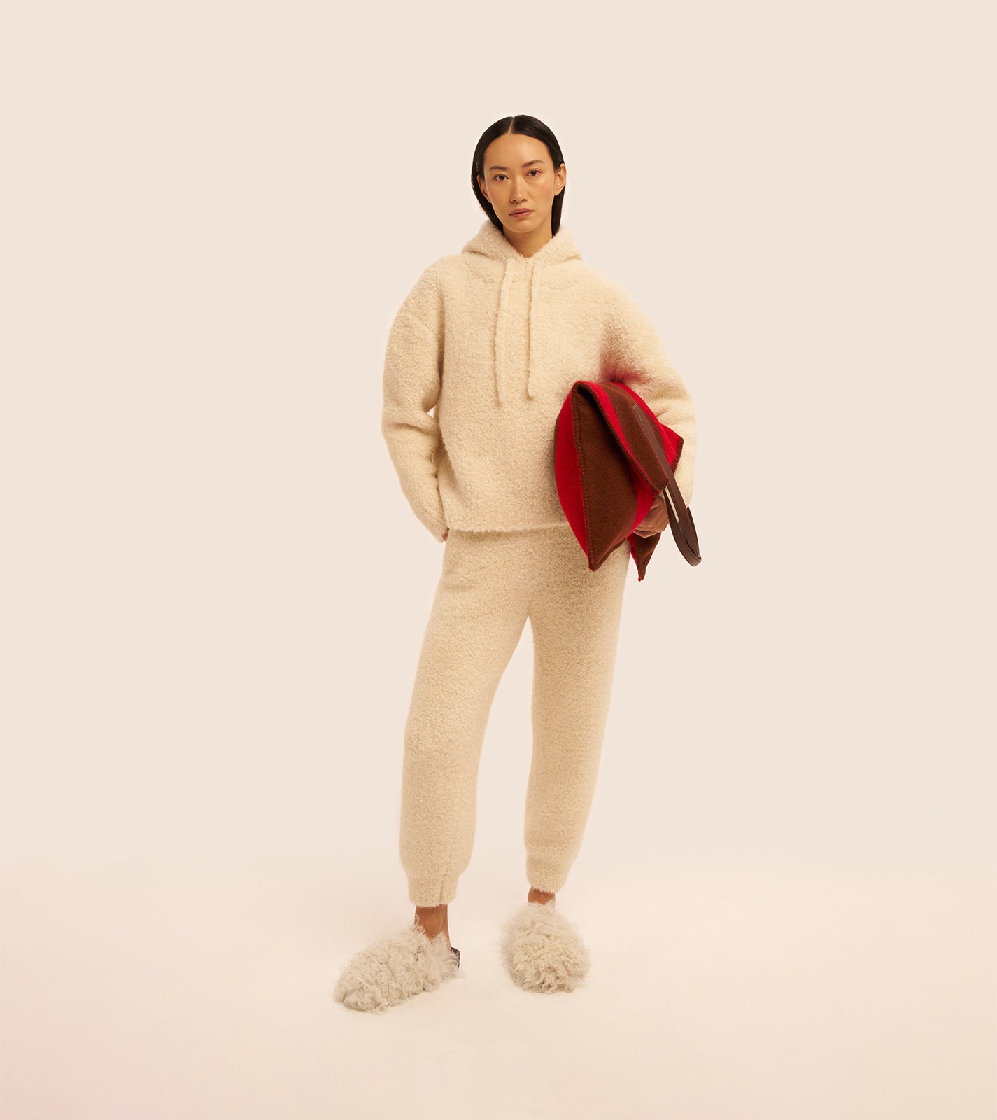 Enhance your loungewear collection with our Boucle Knitted Trousers, designed for optimal comfort and style. Made from incredibly soft, certified Suri Alpaca yarn, they pair perfectly with the matching hoodie for a cohesive look. Effortlessly chic and easy to care for, these trousers are essential for refined comfort in your everyday wardrobe.