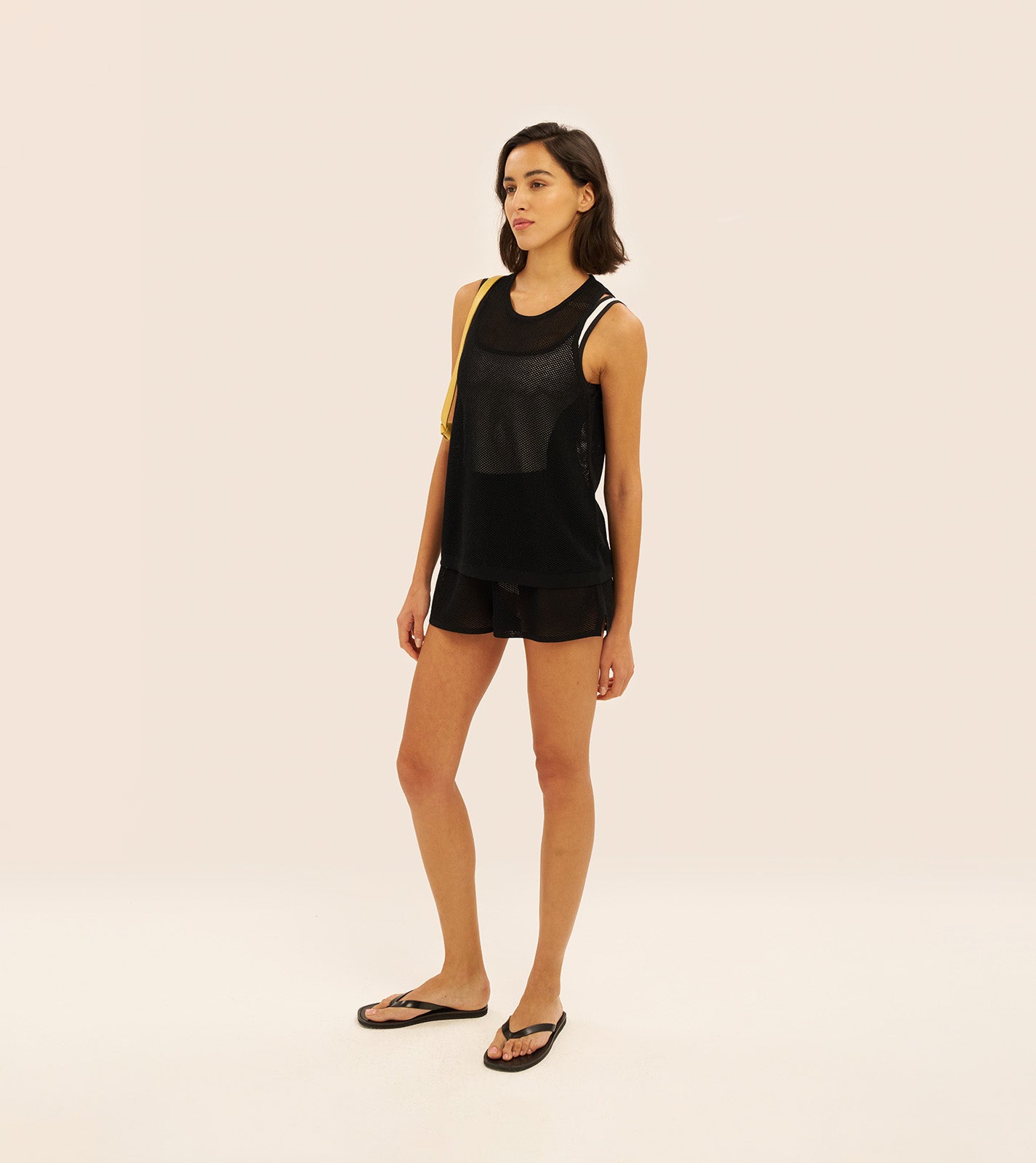 The Mesh Short embodies poolside elegance with its relaxed fit and luxurious feel. Crafted from a technical double-face mesh knit structure, it seamlessly blends comfort with style. This versatile piece adds a touch of sporty chic to your resort look, perfect for lounging by the pool or strolling along the shoreline.