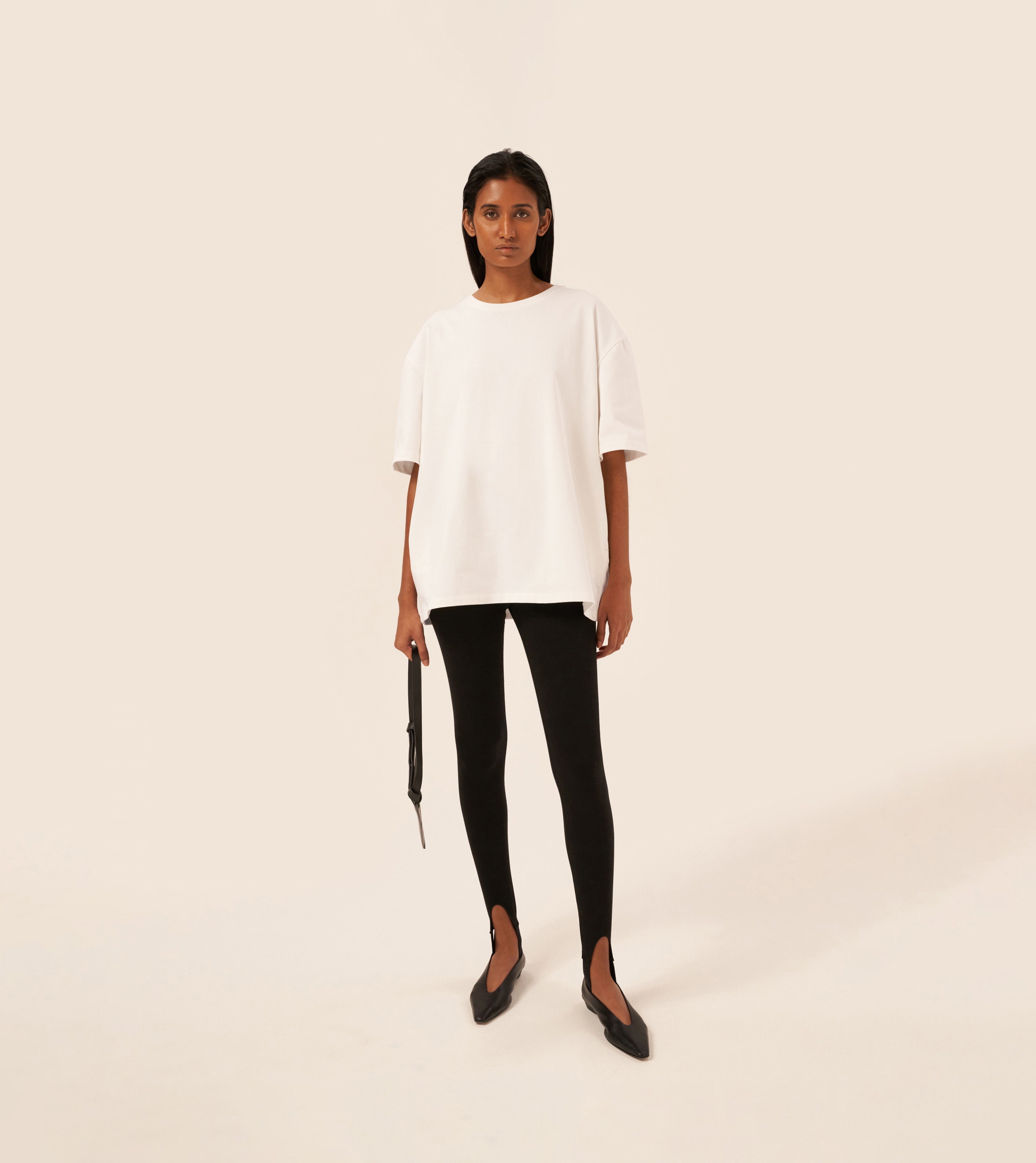 The Stirrup Legging is fashioned from a sumptuous Italian fabric and is tailored in a high-rise silhouette with a tonal embossed logo waistband. It is adorned with anti-slip elasticated stirrups that provide ample support to the arches of the feet. These leggings are ideal for layering and will seamlessly accompany you through your day, no matter the occasion.