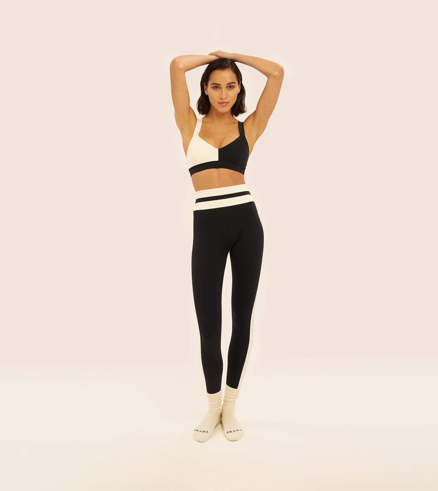 The Bi-colour Legging features a clean bonded waistband and striking bi-colour panelling. They are crafted from a high-performing ultra-fine gauge fabric that offers unrestricted movement while enhancing your leg shape. The compression fit provides essential muscle support, ensuring comfort in every move.