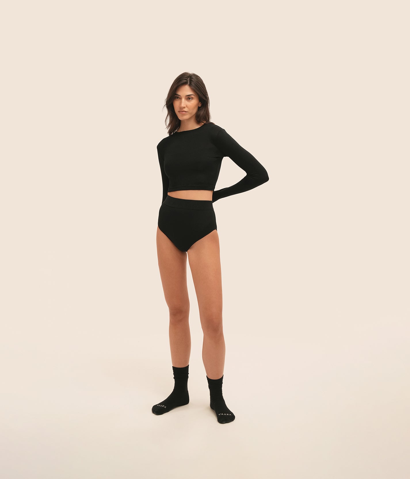 The modern essential. VAARA’s Cropped Long Sleeve T-Shirt comes in Modal, a breathable fabric that is 50% more absorbent than cotton and incredibly soft...Read More