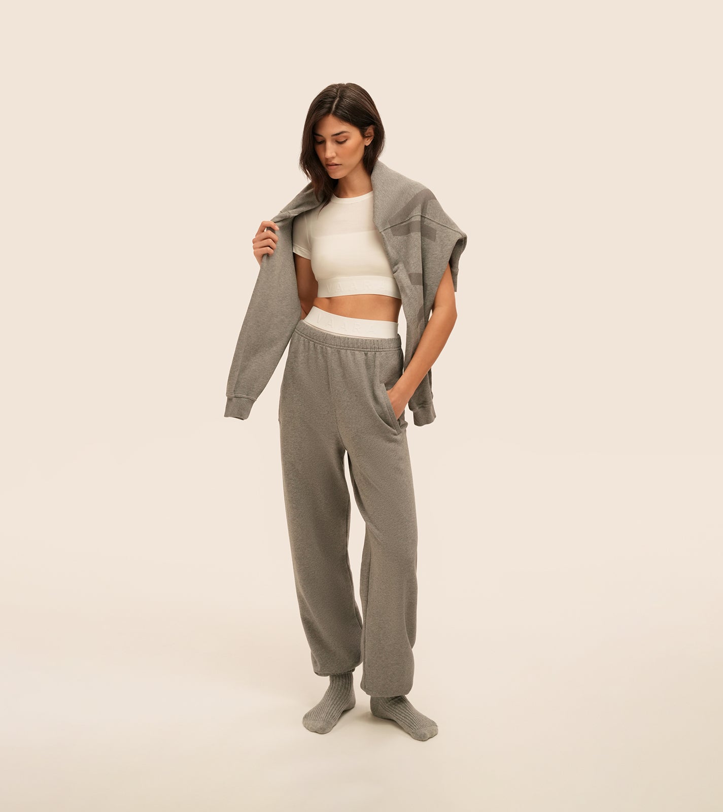 Our crew-neck Crop T-Shirt has topstitching and a branded elastic hem, embodying the minimal sporty aesthetic of VAARA. Paired withRead more