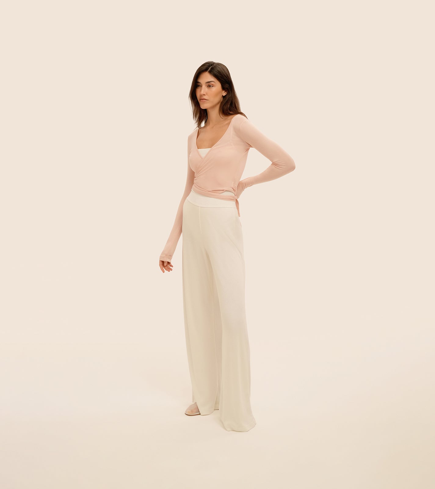 Feminine and ballerina-inspired, the Fitted Wrap Top is made in super-soft Modal fabric, ideal for sportswear and base layers thanks to its durability and breathability. Topstitched for a neat finish, it features extra-long sleeves and a flattering V-neck. Experiment with multi-wear and tie at the side, back or wrap around twice.