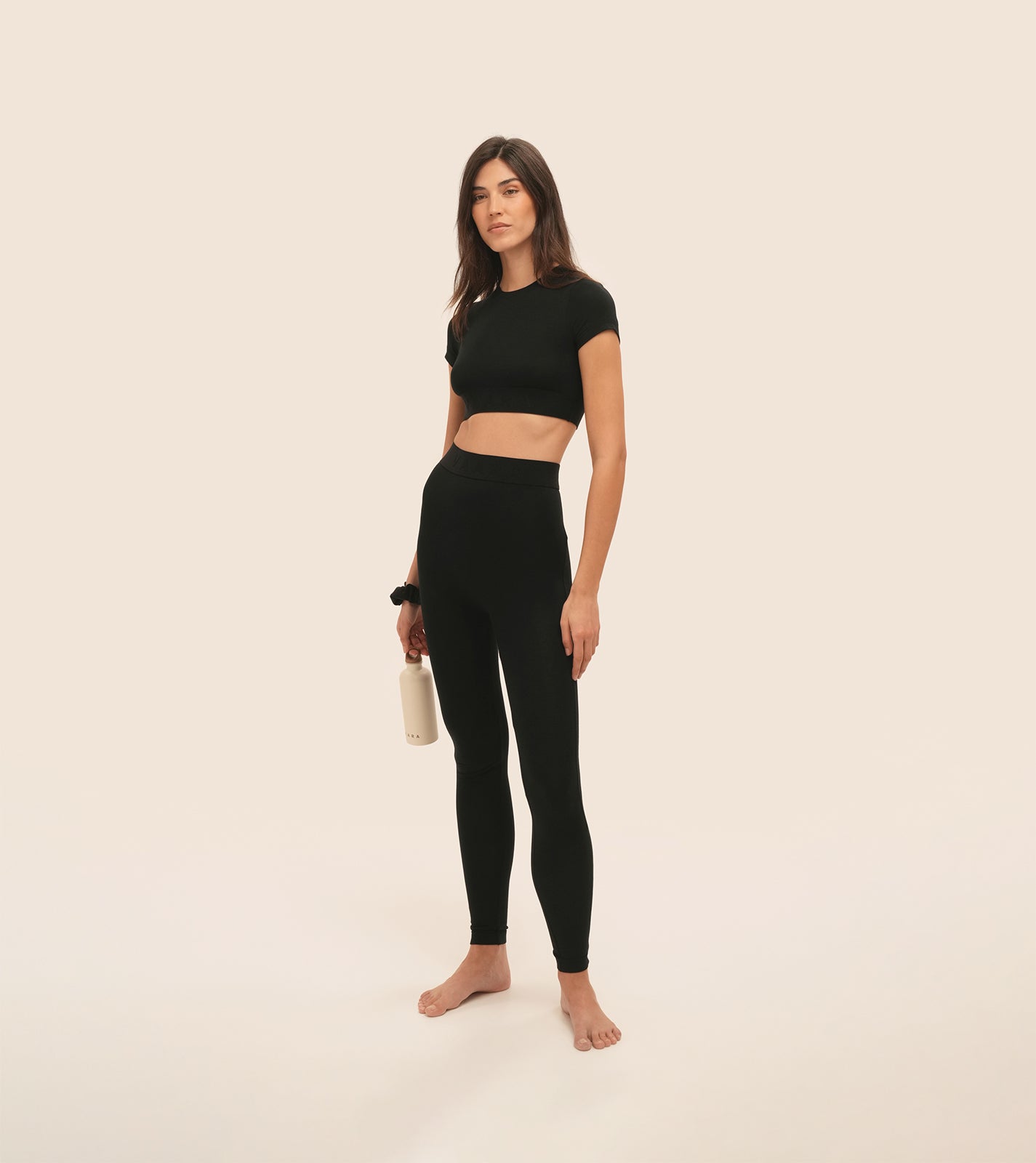 The High Rise Legging, complete with triple topstitch VAARA branded elastic waistband, lends a sporty aesthetic. The regular leggings are made in innovative SEACELL cellulose fibre, enriched with brown seaweed to allow skin to harness the power of nature. The fabrication is eco-friendly and kind to skin. Turn to the look in the studio or when running errands around town.