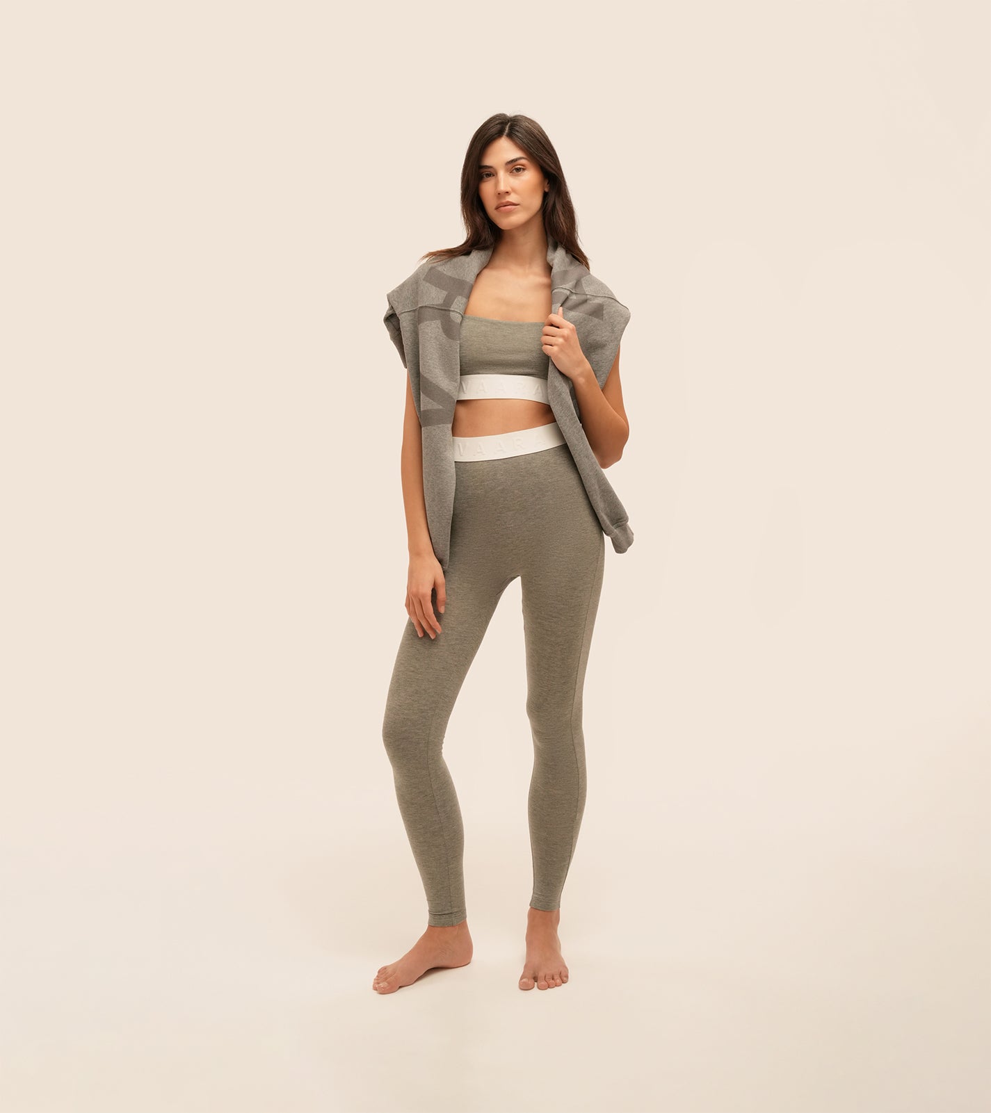 The High Rise Legging, complete with triple topstitch VAARA branded elastic waistband, lends a sporty aesthetic. The regular leggings are made in innovative SEACELL cellulose fibre, enriched with brown seaweed to allow skin to harness the power of nature. The fabrication is eco-friendly and kind to skin. Turn to the look in the studio or when running errands around town.