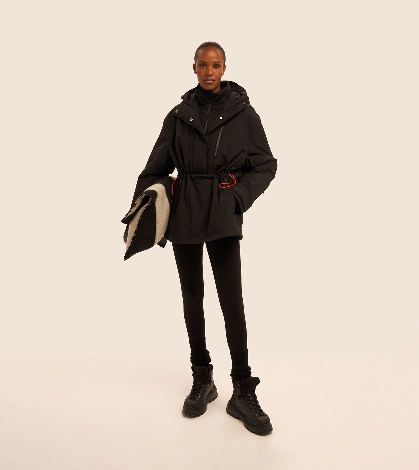 The Padded Shell Coat is a perfect blend of style and warmth. Crafted from recycled, water-repellent fabric and plush natural wool padding, it features a flattering silhouette with an oversized placket and chic VAARA coral accents. The cinch drawcord at the waist and adjustable sleeve hems enhance its elegance.
