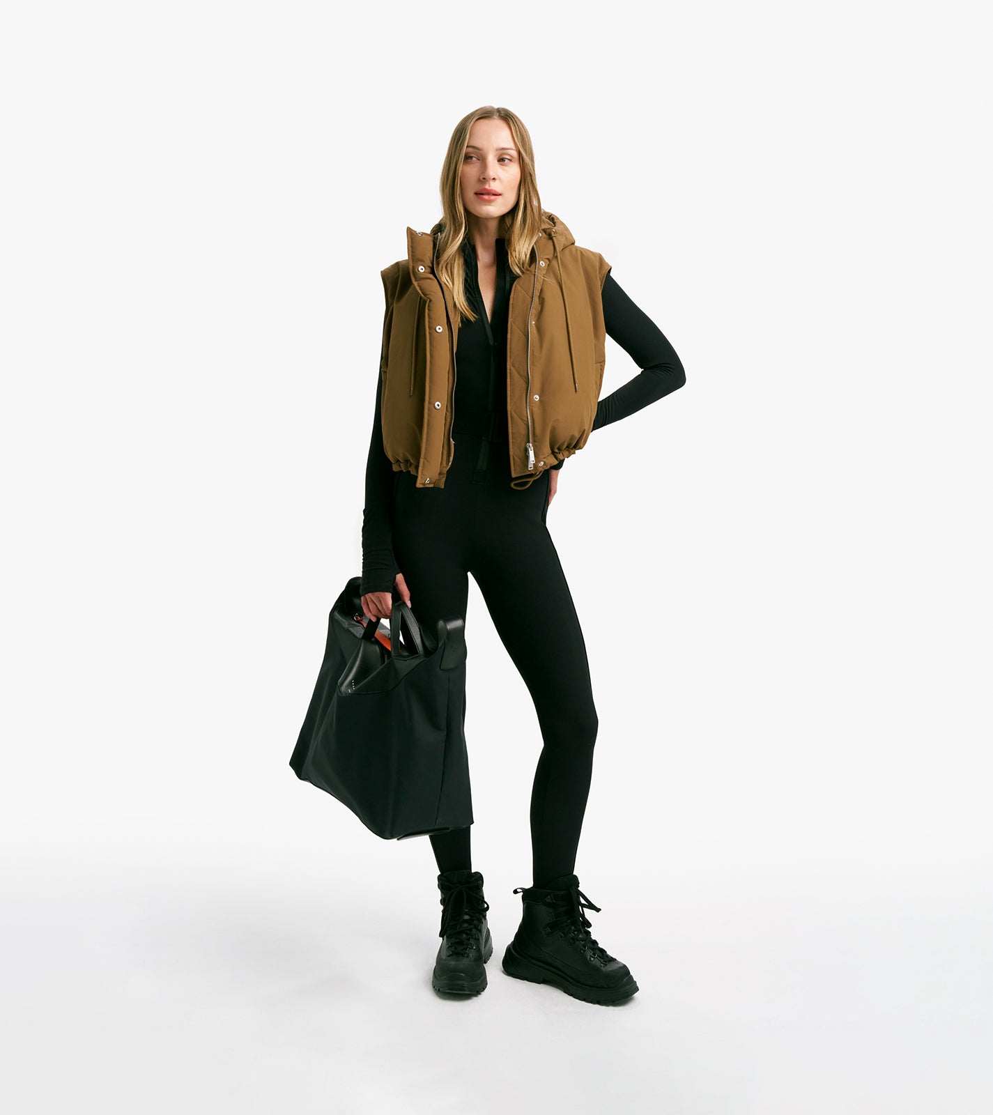 Introducing the Christie Puffer Gilet - VAARA's contemporary hooded take on this essential winter layering piece. Cut in a boxy, cropped silhouette from a technical water-repellant, recycled shell with a locally sourced, luxurious duck down insulation. Features include a snap front placket, adjustable drawstring hem, hand pockets and an inside chest pocket.