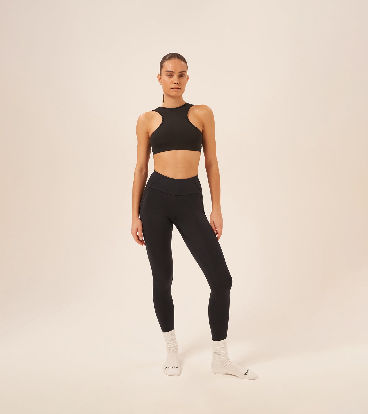 The mid-coverage performance bra has been meticulously fashioned from the finest Italian yarn, lending it a velvety texture and unparalleled four-way stretch for supreme comfort and moisture management. Artfully engineered to shape the bust, it effortlessly doubles up as a chic and adaptable layering item.