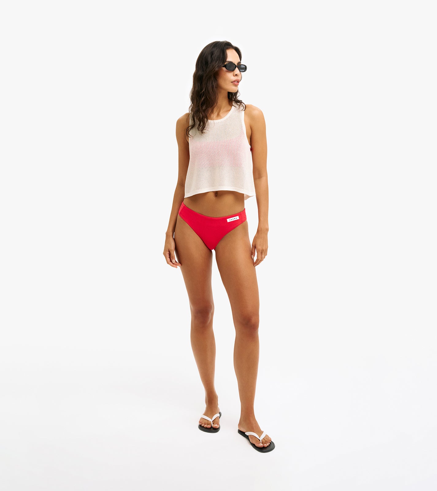 Made from sustainable Italian towelling fabric, the Mid Rise Bikini Bottom offers extreme softness along with breathability and quick-drying properties. It features VAARA branding on the front, a fully lined design, and a curved waistline for a flattering fit. Pair with the matching Towering Bikini Bra for a coordinated look.